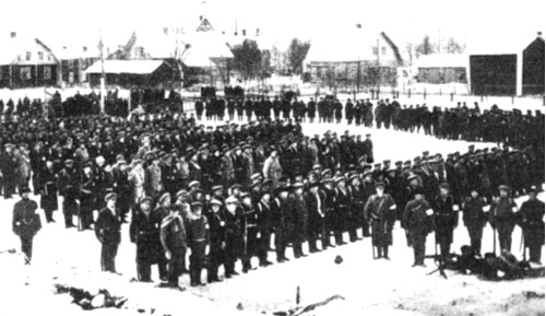 Lapuan suojeluskunta 1.3.1918 Lapuan yhteiskoulun pihalla.